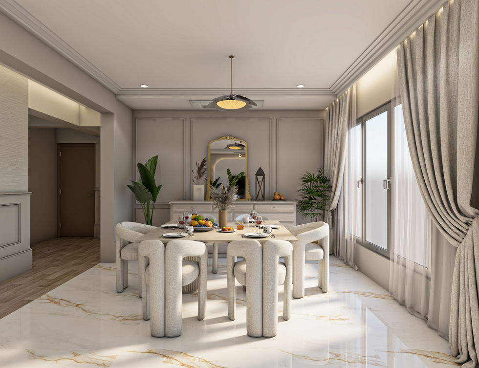 A tranquil space designed with an earthy color scheme and airy interiors, blending warm, natural tones with open, breathable layouts. The design exudes warmth and serenity, creating a seamless connection between comfort and nature.